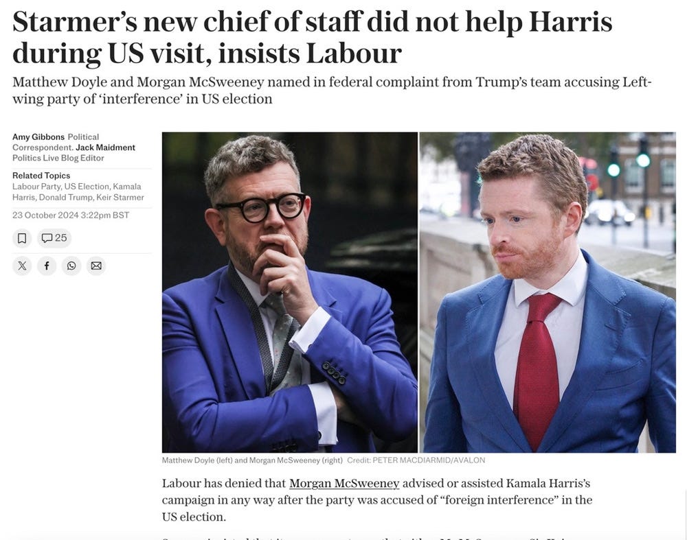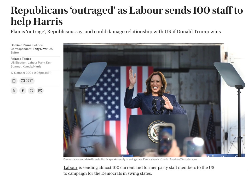 It was bad enough Starmer sent over 100 volunteers to work for the Democrats.