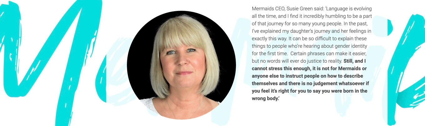 In 2020 Mermaids publicly renounced such language. Critics pointed out this new approach just happened to be announced 24 hours before the UK government issued a new policy that any organisation using such language would be excluded from schools. Maybe Susie Green had a telepathic dream?
